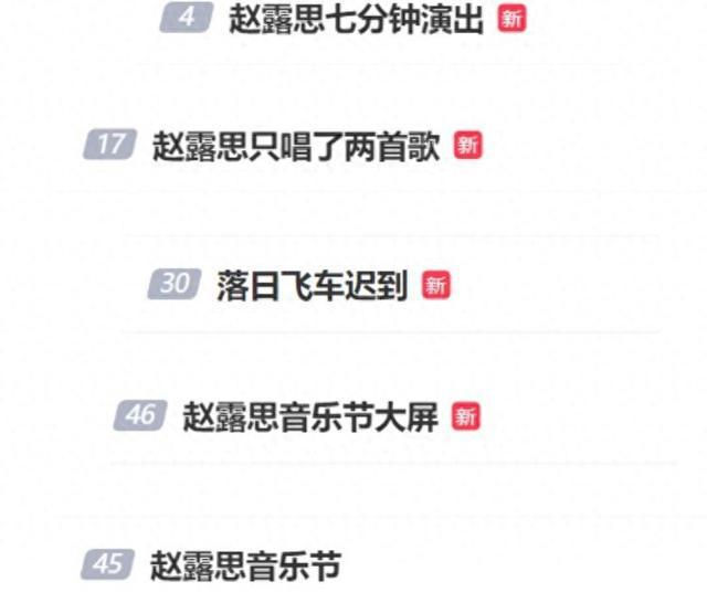 5月2日,#赵露思七分钟演出# #赵露思只唱了两首歌# #赵露思音乐节# #落日飞车迟到#等话题冲上热搜。