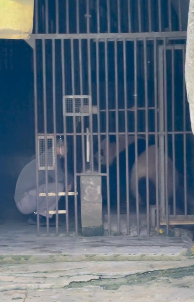 工作人员带着“双双”进入圈舍进行身体检查,几分钟后,“双双”再度来到展区,看起来身体状态还不错。