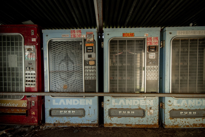 如今,这些承载雄心和未来的自动贩卖机被人遗忘,连同那代人一起退出了舞台,只留下铁壳残骸,被野草包围,被拍照留念,成为一块废弃心脏。