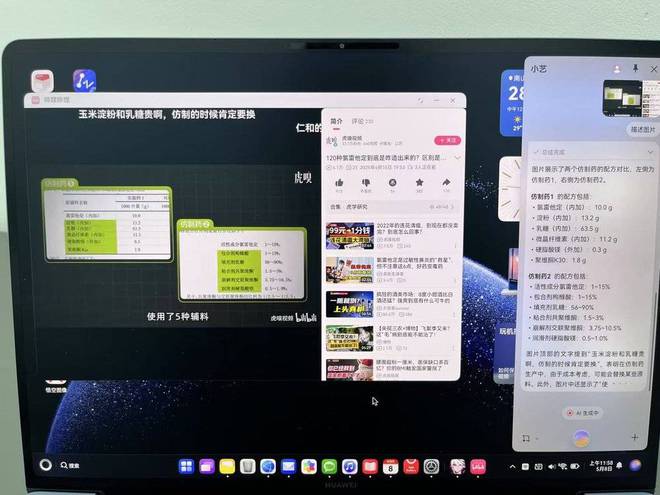 这里以小艺上的“识图对话”功能为例,笔者在电脑上用B站播放了“虎嗅视频”于4月15日上传的视频《120种氯雷他定到底是咋造出来的?》,随机暂定并圈选整个播放界面,让小艺总结这一帧的画面信息。