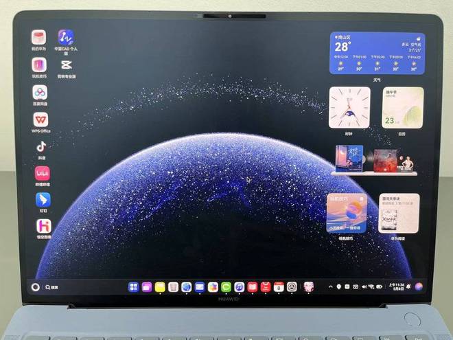 从桌面图标和底部Dock栏的排列方式上能够看出,鸿蒙系统在界面整体布局上与Windows类似,但在屏幕右侧,鸿蒙为其加入了“小组件+个性化卡片”组成的功能区域,这在一定程度上简化了过去桌面端系统的操作层级。