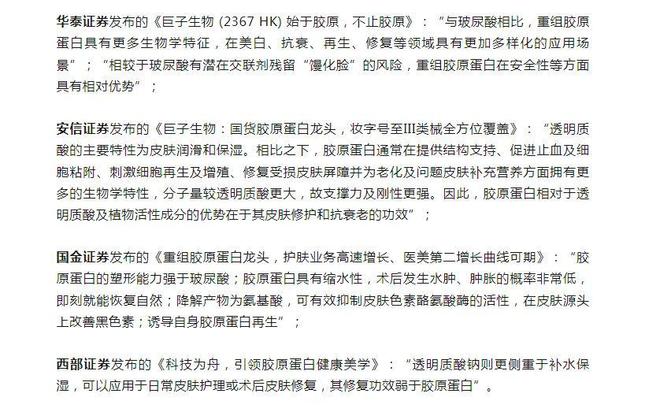 券商研报作为投资者获取行业和公司分析的重要来源,其内容的客观性和专业性至关重要。在江瀚看来,此次事件将焦点指向多家券商研报,暗示了行业内可能存在对特定技术或产品(如玻尿酸与重组胶原蛋白)理解不一致的情况,需要进一步澄清。