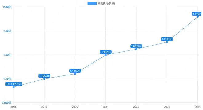 2024年,联合光电的研发投入为2.14亿元,相较2023年的1.71亿元,增长25%。而将时间线拉长来看,从2018年至2024年,上市公司研发投入不断提升,可能在一定程度上拖累公司盈利规模难以突破亿元关卡。