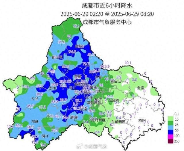 昨夜今晨,成都的雨有多大?成都市气象台介绍,全国2569个国家级气象观测站中,今天7时小时雨强成都包揽前三,分别是郫都区、温江和双流。