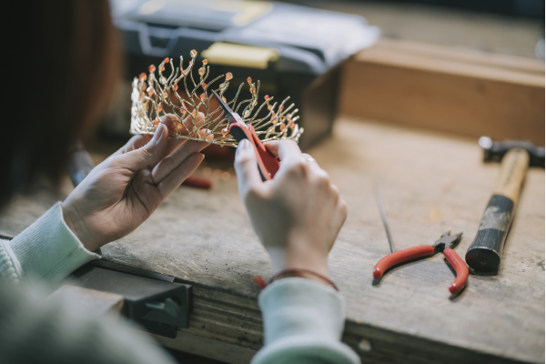 学生在大学工作台用钳子调整手工制作珠宝。(图/视觉中国)