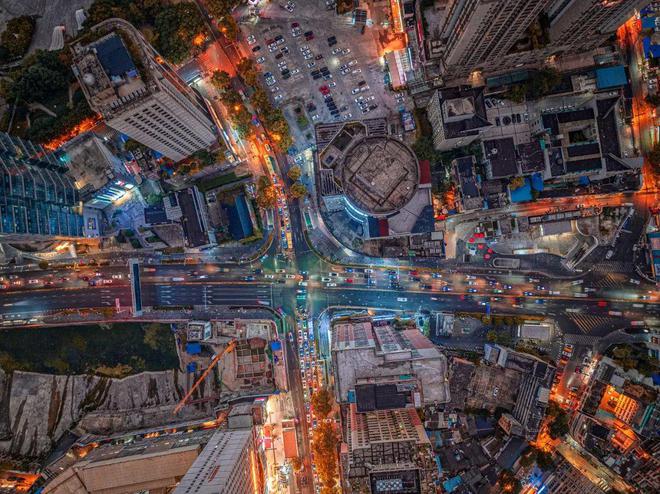 冬季的贵阳大十字,黄昏和傍晚的景色,老城区的味道。(图/视觉中国)