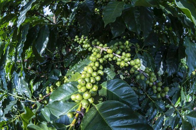 云南普洱思茅区,北归咖啡庄园的绿色咖啡鲜果。(图/视觉中国)