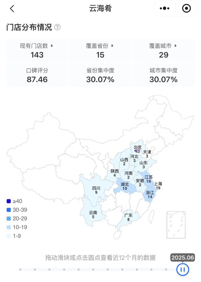 云海肴国内门店分布情况 来源:窄门餐眼