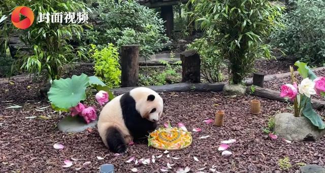 7月4日,在成都大熊猫繁育研究基地内,“熊猫界顶流姐妹花”和花和叶迎来了5岁生日。现场,熊猫基地6号别墅活动场地内,饲养员精心准备了荷花荷叶丰容,生日蛋糕摆在地上,现场布置温馨可爱。