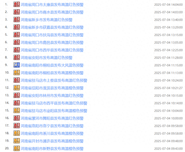 7月4日,河南多地发布高温红色预警信号,最高气温升至40℃以上!