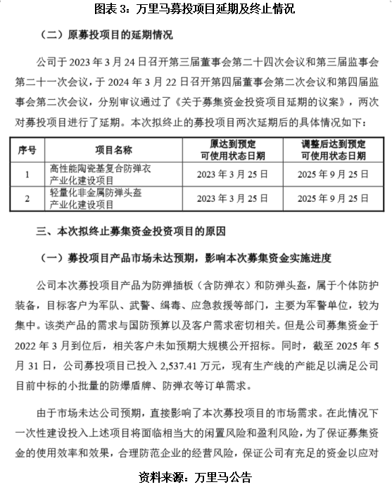 基于上述三点原因,万里马董事会决定终止募投项目。不过,万里马也表示,若上述项目市场需求恢复,将根据市场环境变化适时以自有资金实施。