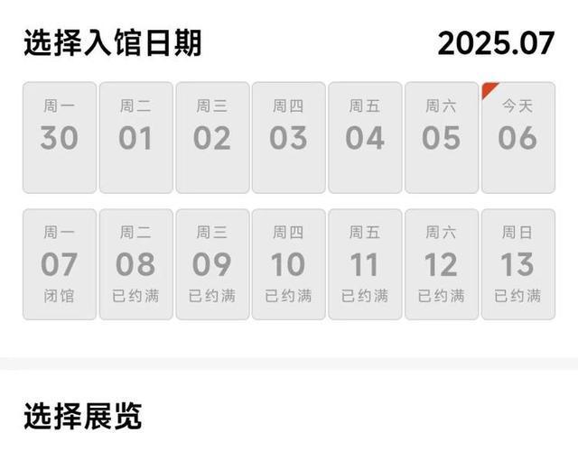 澎湃新闻记者点开国家博物馆小程序进入预约服务系统,果然,七天之内的门票均已约满。