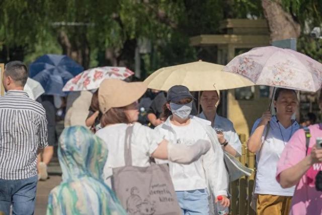 7月5日,北京最高气温达到36摄氏度。国家博物馆门口依然人来人往,挂在金色道闸上的大喇叭反复播放着:“有预约的游客请准备好身份证排队进入,没有预约的请原路返回”。