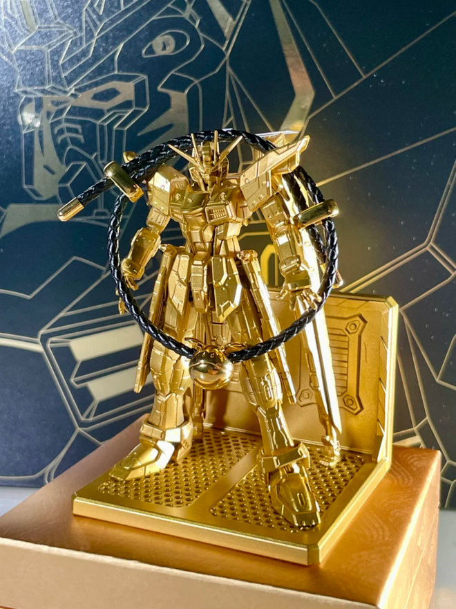 徐嘉沁购买的老凤祥和万代推出的《机动战士高达SEED》黄金系列联名产品——没错,老凤祥和万代“很有诚意”地将冰箱贴也做成了立体的模型。(图/受访者提供)