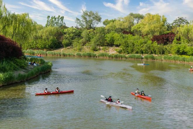 最近几周,付晴发现皮划艇和桨板租赁的摊子也开始在昆玉河边支起来了,偶尔还有人在打水球。