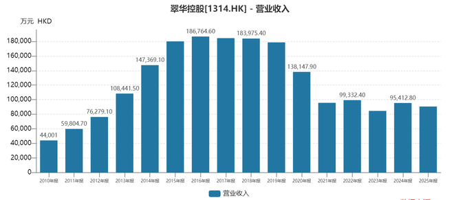 财报数据显示,翠华控股的营收在2016财年(即2015年4月1日至2016年3月31日)达到顶峰,实现营收18.68亿港元。此后多年,公司的营收便维持在18亿港元左右的水平。