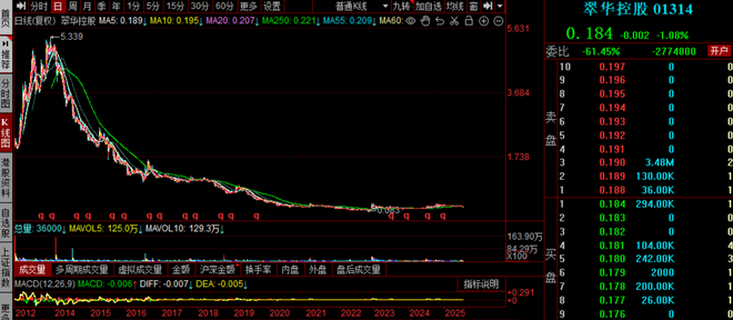数据显示,翠华控股股价于2013年11月来到最高点5.339港元/股,市值一度超81亿港元。此后,该公司股价便一路下行,于2022年10月底触及最低点0.083港元/股。截至7月10日收盘,翠华控股报0.190港元/股,市值仅剩2.68亿港元,较历史最高市值蒸发超78亿港元。
