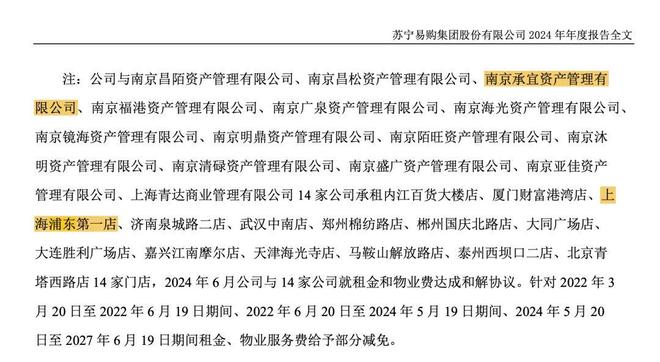 通过企查查平台查询可见,上海奉浦苏宁易购销售有限公司的股权结构中,苏宁易购集团股份有限公司持股比例高达99%。值得注意的是,记者在苏宁易购2024年度报告中发现,该公司与包括南京承宜资产管理有限公司在内的14家企业存在门店租赁关系,其中就涵盖此次涉事的浦东第一店。这一租赁关系架构,或可解释为何南京承宜资产管理有限公司会出现在被告名单之中。