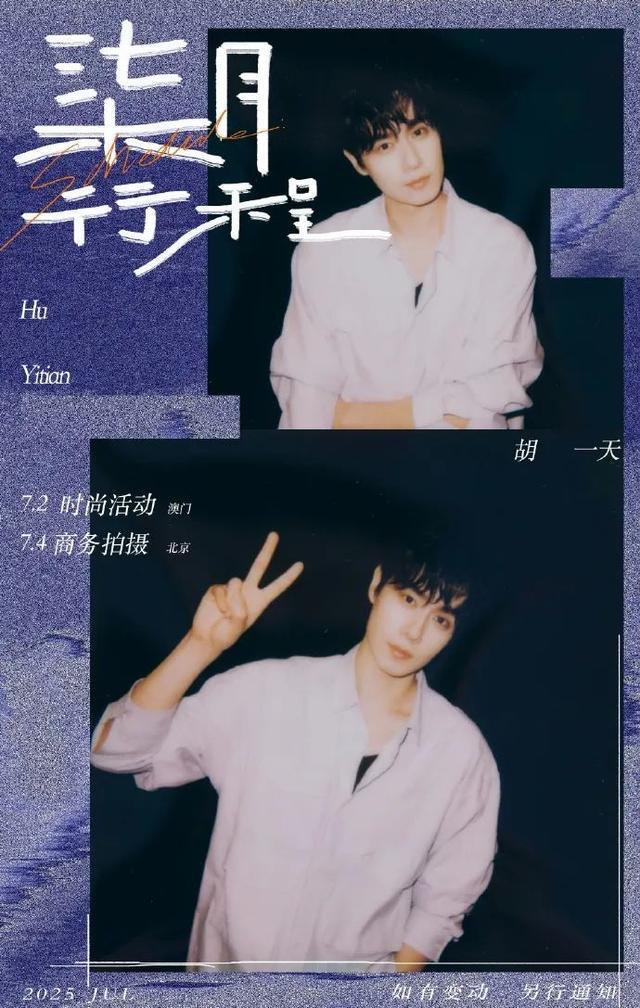 目前,胡一天最新发布的7月行程显示,本月仅有2个活动,依旧没有进组消息。