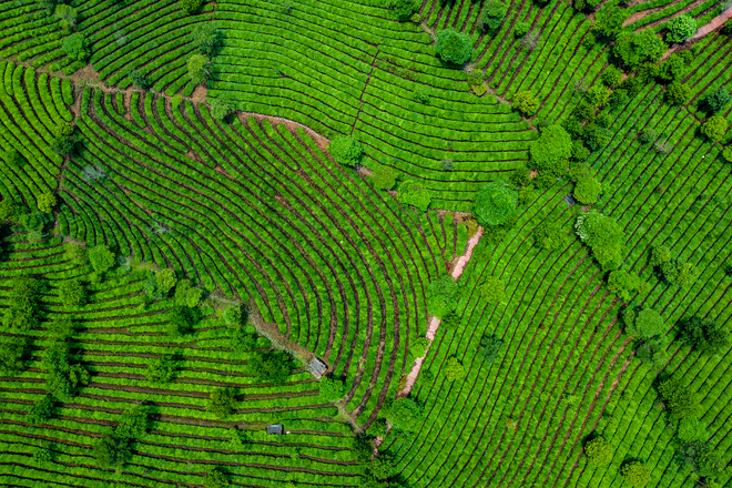 普洱最知名的景迈山,坐落着目前发现面积最大、保存最完好、年代最久远的人工栽培型古茶园。景迈山有5片古茶林、320万余株古茶树,同时还有9个传统村落,茶林和少数民族聚居的村落和谐共生。