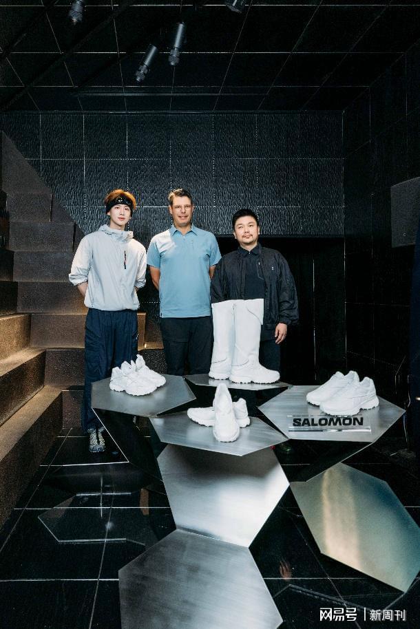 【重要嘉宾见证未来之路启幕,从左到右依次为:萨洛蒙户外风尚代言人白敬亭先生、萨洛蒙总裁兼全球首席执行官Guillaume Meyzenq先生、萨洛蒙总经理副总裁殷一先生】