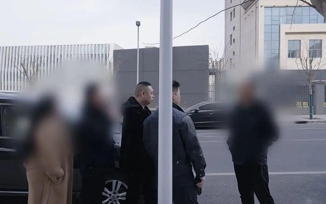 阿灿和队员在法庭外执行出庭保护现场。(图/红星新闻视频截图)