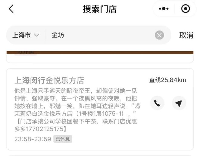据了解,该奶茶店为茉莉奶白的上海闵行金悦乐方店,事故发生时正处“开业有礼”活动期,死者年仅17岁,事故发生后目前门店状态调整为“已休息”。
