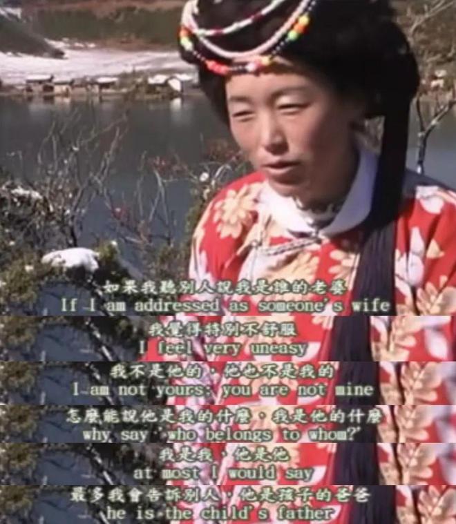 2001年,伽才的妈妈接受学者的采访。(图/纪录片《三个摩梭女子的故事》)