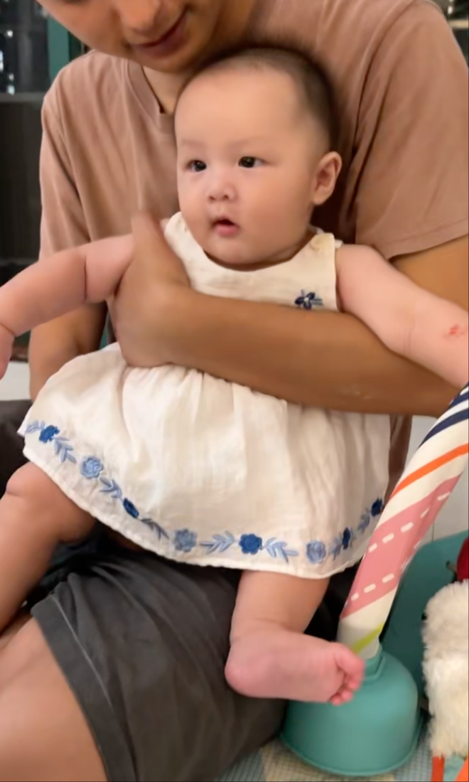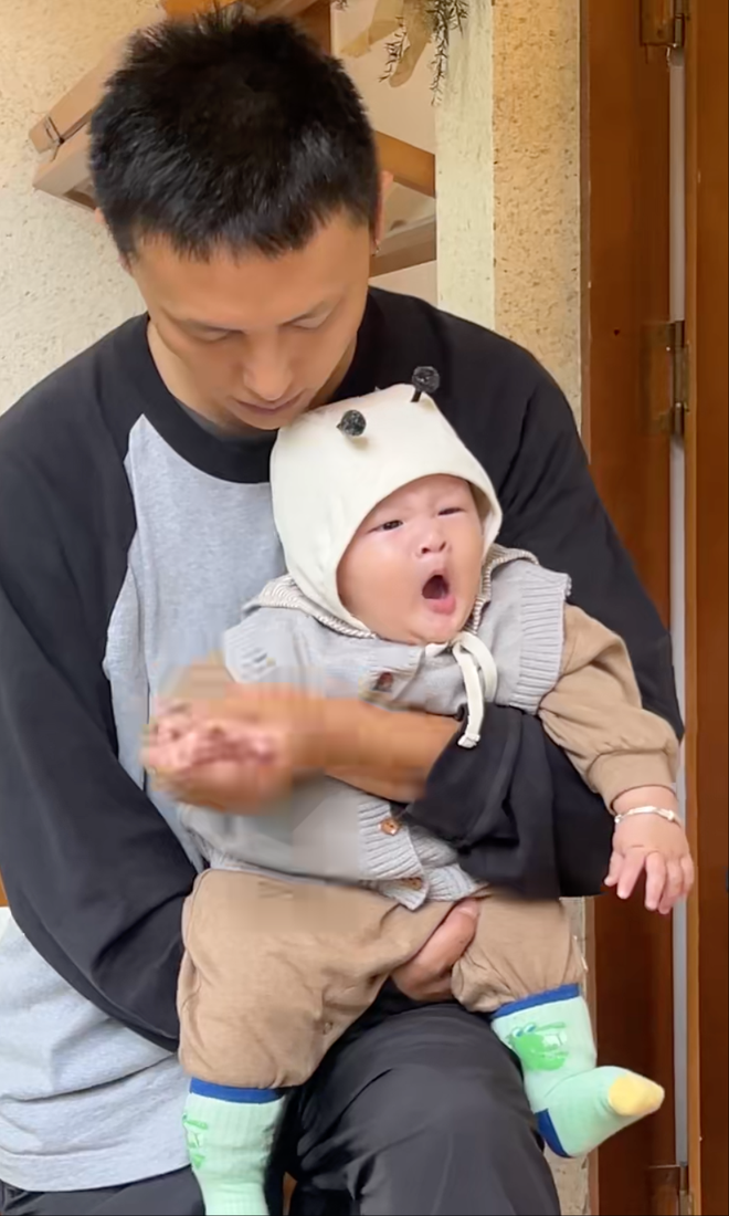 宝宝被伽才带得很有安全感。(图/受访者提供)