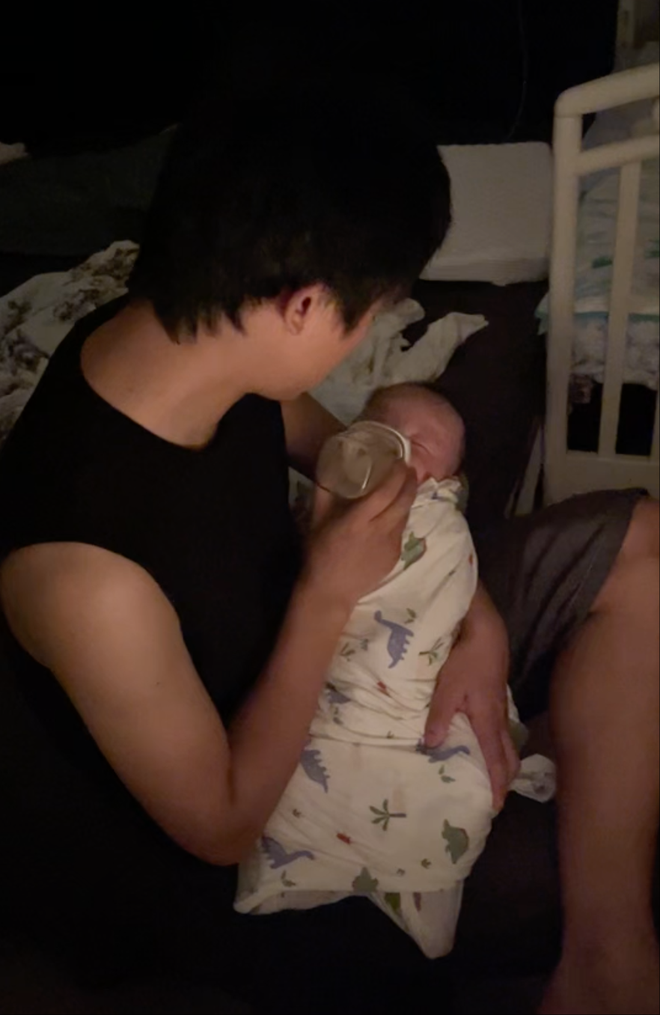 伽才在给孩子喂奶。(图/受访者供图)
