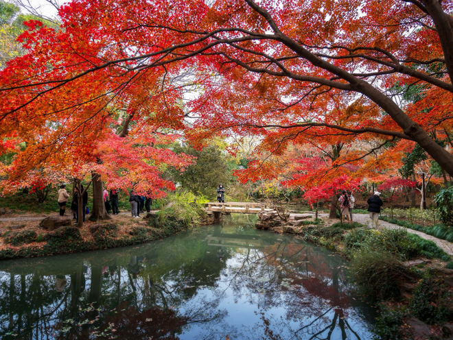 而秋霞圃顾名思义,取自诗句“秋水共长天一色,落霞与孤鹜齐飞’,历来是赏秋佳处。尤其是园中桃花潭景区的红枫,令游客有一种“何必去京都”的幸福感。