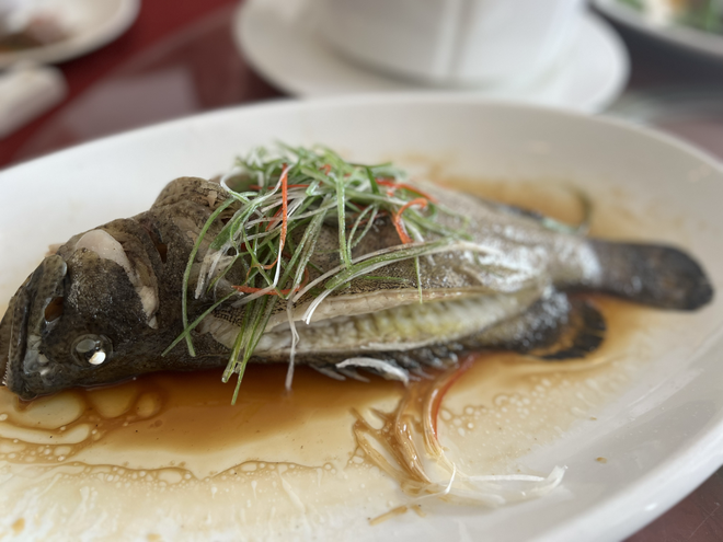 清蒸四鳃鲈鱼,味道尤其鲜美。(图/钱鸣 摄)