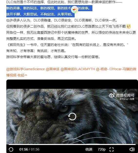 “新的英雄,新的玩法,新的视觉,新的技术,新的故事。放开手脚,大胆尝试,不拘定法,从零开始。”《黑神话:悟空》制作人冯骥发文说,“游戏科学会带着大家的爱与愿,继续认真交付每一份新的答卷。”