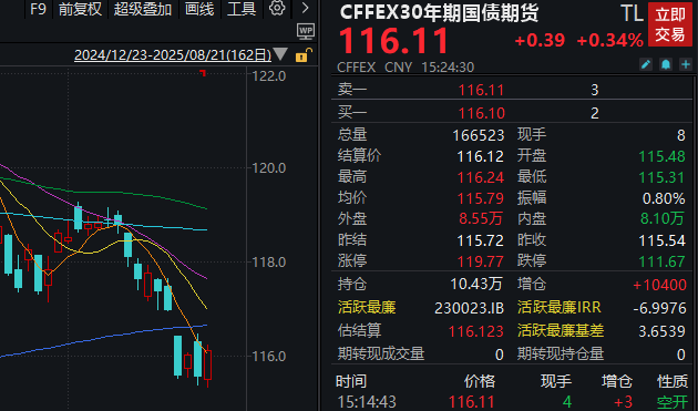 债市近期与股市呈现出显著的“负相关性”。自8月13日以来,A股交投火热,连续7个交易日成交额突破2万亿元,沪指近期冲上3700点后,仍在不断创下新高。与此同时,自8月7日以来,30年期国债期货连续调整,其中,8月18日单日大跌1.33%,10年期、5年期、2年期国债期货亦全线下跌。8月21日,30年期国债期货止跌企稳,收涨0.34%。