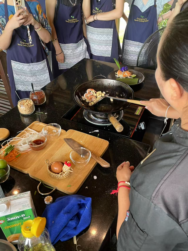 当地老师会先从酒店接上这群来自世界各地的“学生”,将他们带到当地菜市场中,一一辨认、讲解那些在冬阴功汤和咖喱中拥有灵魂地位的香料和植物。随后,一行人被带到城郊的基地里,最终在一个半开放式的厨房里,尝试亲手复刻出地道的泰国味道。