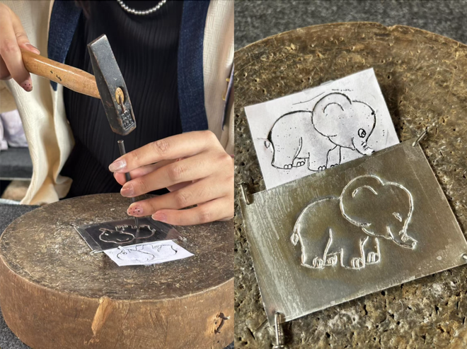 锡苏邦寺(银庙)旁的银饰课上,游客可以根据模板自己敲制可爱的大象挂链,也可以DIY戒指、项链;柴迪隆寺附近,参观完欧式和泰式结合的百年老宅,还可以动手制作捕梦网和兰纳纸灯笼。