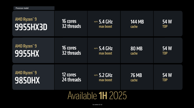 处理器方面,该系列主板搭载的锐龙9 9955HX3D和锐龙9 9955HX处理器均为16核的Zen 5架构处理器,最高频率都是5.4GHz,区别在于前者有一个CCD配备3D V-Cache,总L3缓存达到了128MB,后者则是普通的双CCD锐龙处理器,总L3缓存64MB。这两颗处理器的TDP都是55W,最高可提升至75W,但在作为MoDT主板上的处理器时功耗会进一步解锁。