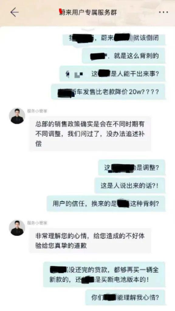 也是这些点,引发了ES8老车主的不满,他们认为这是赤裸裸的“背刺”。部分老车主向蔚来客服吐槽,“刚买的车还没还完贷款,而这些贷款都购买一辆全新的ES8了,甚至是整车购买”。