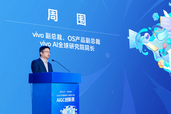 vivo副总裁、OS产品副总裁、vivo AI全球研究院院长周围在决赛颁奖礼的发言中表示,作为国内率先重兵投入并发布大模型的智能终端厂商,也是首个在手机终端成功部署大模型的企业,以及工信部人工智能标准化技术委员会唯一的终端企业代表,vivo深知人才是AI竞争的核心基石。今年是vivo公司成立30周年,vivo从电话机、功能机、智能机一路走来,始终引领行业前沿。这不仅源于vivo对趋势的精准把握,更离不开对人才的持续重视与储备。助力青年成长、发掘创新力量,正是vivo承办AIGC创新赛的重要初衷。vivo致力于为高校学子打造一个探索实践AIGC的平台,并寻找志同道合的伙伴。