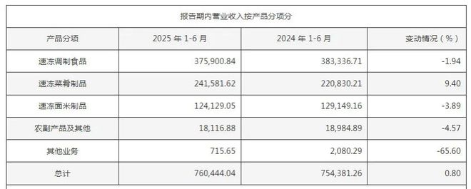 但从上半年表现来看,公司业务结构分化,仅预制菜(速冻菜肴制品)实现增长,其余品类销售均显低迷。