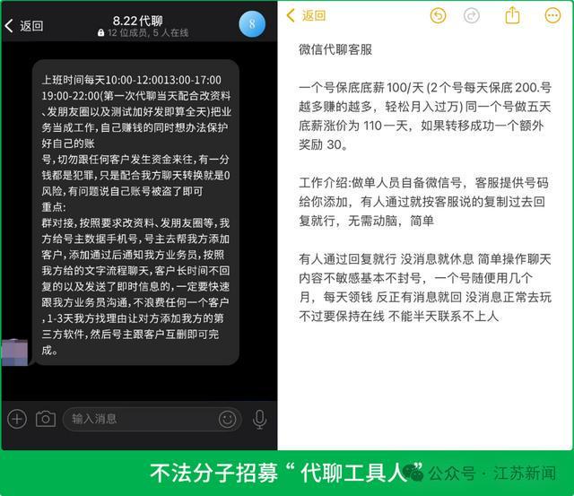微信安全中心根据用户投诉发现,不法分子在外部平台发布代聊招募信息。他们组织“代聊工具人”以找宠物、刮车、相亲等为由添加微信好友,再以“错加好友”为借口展开后续沟通。随后,不法分子会逐步指导“代聊工具人”与潜在受害人聊天,并诱导潜在受害人下载外部App,进而实施跨境电商虚假投资、交友、租房等类型的诈骗。