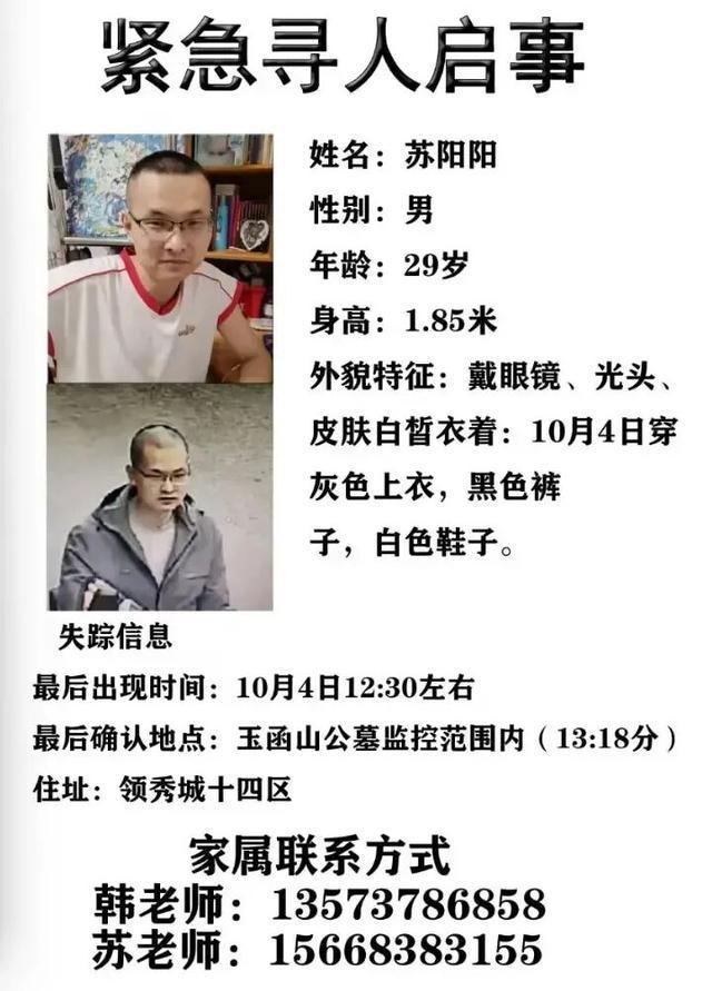 其家属告诉记者,苏阳阳今年29岁,家住济南领秀城十四区,最后出现的时间是10月4日12:30左右。监控画面显示,当日13:18左右,苏阳阳从济南玉函山公墓进入玉函山后失联。