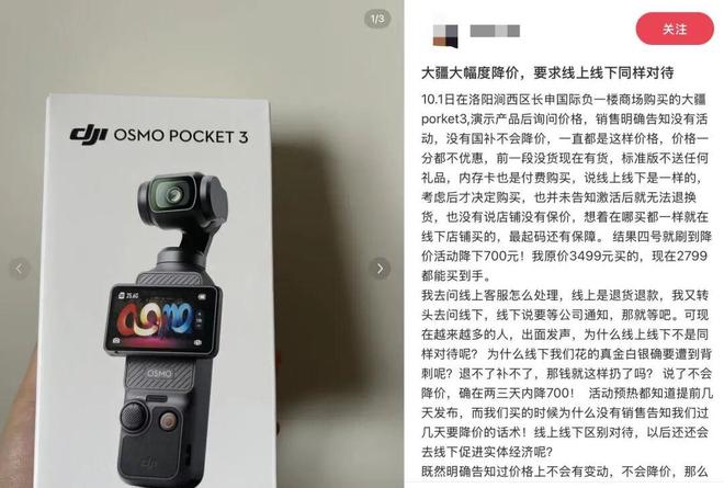 针对消费者关注的线下差异问题,大疆方面回应记者称,公司也注意到由此引发的关注与讨论,也高度重视每一位用户的反馈。目前正通过各个渠道积极沟通,为用户提供清晰指引与必要支持。