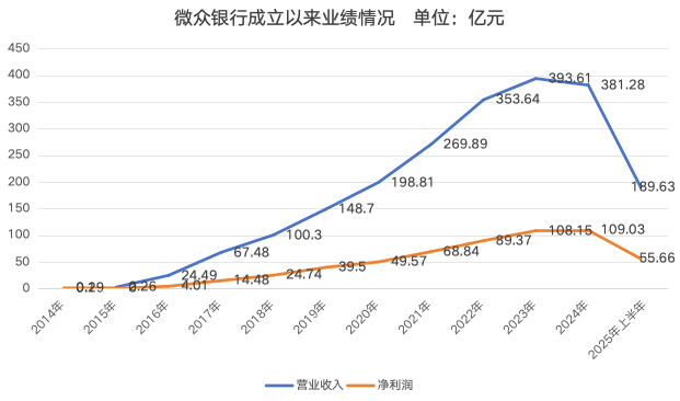 国庆节前最后一天,微众银行发布了2025年上半年财务报告。作为国内民营银行的“领头羊”,这份财报既呈现了资产规模的稳步扩张,也暴露了成立以来首次营收、净利润“双降”的业绩压力,折射出其核心业务转型与市场环境变化的深层矛盾。