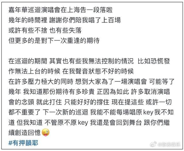 10月12日,周杰伦发文,透露演唱会期间也会有自己无法控制的情况,比如恐慌发作无法上台等。