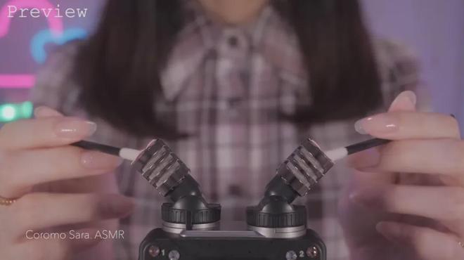 早期ASMR视频,创作者使用棉签等工具摩擦话筒,达到“精神振奋”的效果。(图/视频截图)