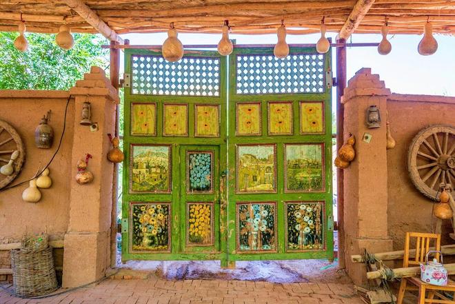 这是一座隐藏在鄯善县的小村落,因家家户户装饰着五彩斑斓的院门而闻名。在这里,几乎每家每户的院门都是一件独特的艺术品。