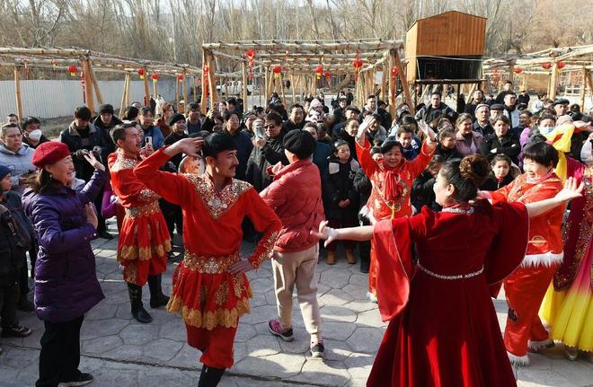 非遗年俗展上,木卡姆艺人载歌载舞。(图/视觉中国)