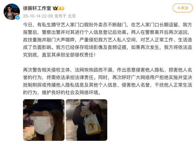 10月14日,演员徐振轩工作室发文: