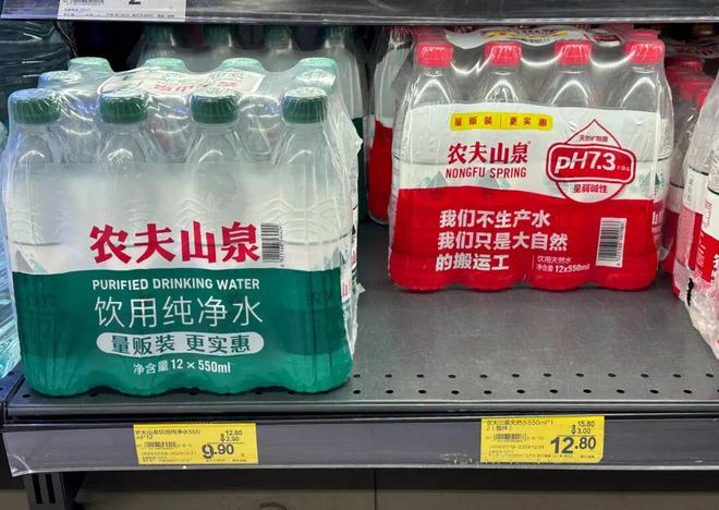 记者注意到,“绿瓶退、红瓶进”,是农夫山泉去年在饮用水业务上最大的变化。公司对红瓶水加大资源倾斜,取消绿瓶纯净水的促销补贴,9.9元/12瓶的低价绿瓶水已成为历史。
